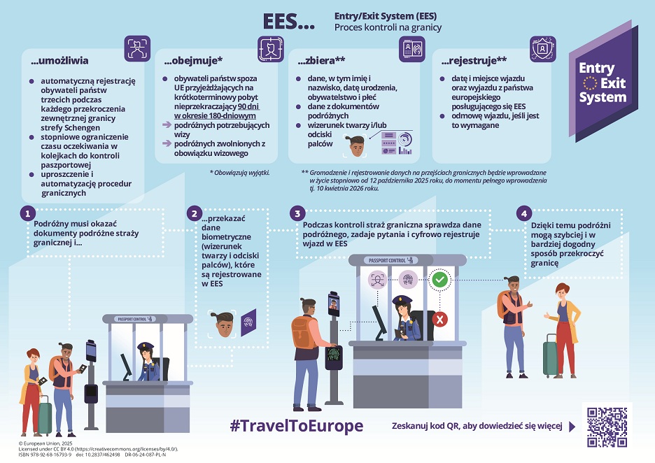 System obejmuje wyłącznie obywateli państw trzecich, którzy przekraczają granice zewnętrzne krajów europejskich korzystających z EES. W Polsce wdrażanie systemu rozpoczęło się 12 października br. od wybranych przejść granicznych z Ukrainą i Białorusią. 17 i 19 listopada system wdrożyły już lotnicze przejścia graniczne Warszawa-Okęcie i Warszawa-Modlin. Natomiast 1 grudnia start systemu zaplanowano w lotniczych przejściach granicznych w poznańskiej Ławicy, we wrocławskim porcie lotniczym oraz na lotnisku w Zielonej Górze – Babimoście. Jednocześnie przypominamy, że lotnisko Wrocław–Strachowice pozostaje zamknięte do 4 grudnia z powodu trwających prac modernizacyjnych. Oznacza to, że praktyczne korzystanie z systemu EES będzie możliwe dopiero 5 grudnia po wznowieniu działalności portu.