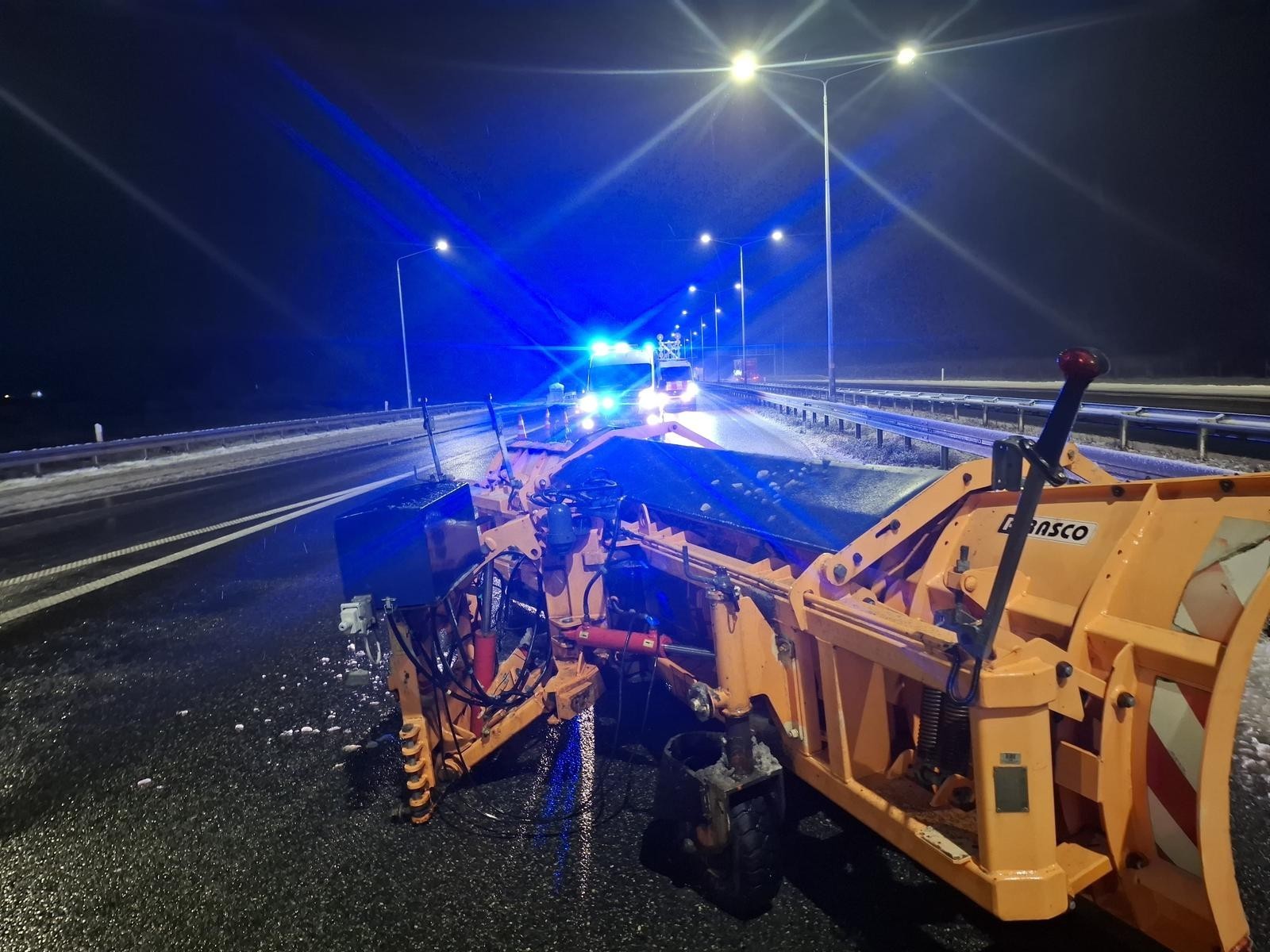 W nocy 26 listopada wrocławscy funkcjonariusze Straży Granicznej wracając ze służby autostradą A4 w rejonie zjazdu Brzeg/Nysa zauważyli leżący na środku autostrady pług odczepiony od pojazdu odśnieżającego dolnośląską trasę.