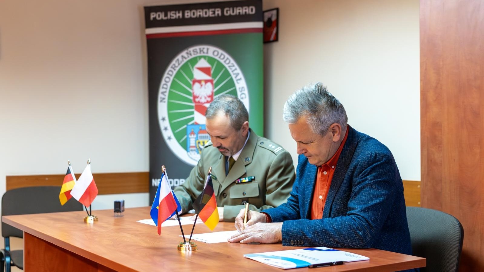 8 grudnia w Zielonej Górze podpisano porozumienie o partnerskiej współpracy w ramach projektu „Przygotowanie i wdrożenie systemu Granicznych Punktów Informacji wzdłuż polsko-niemieckiej granicy”, finansowanego z Programu Współpracy Interreg VI A Brandenburgia — Polska 2021-2027. Nadodrzański Oddział Straży Granicznej reprezentował ppłk SG Dariusz Michalski komendant zielonogórskiej placówki SG, natomiast Stowarzyszenie Gmin RP Euroregion „Sprewa-Nysa-Bóbr” - prezes Czesław Fiedorowicz.