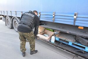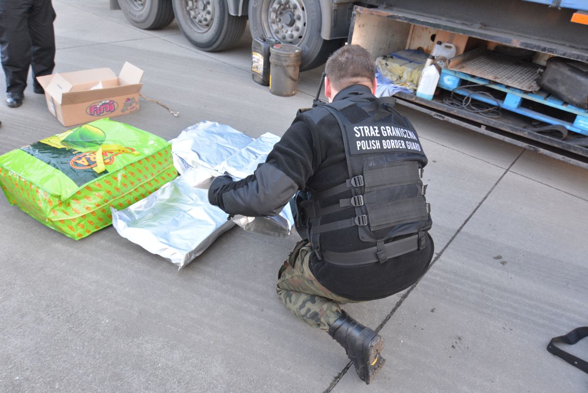 Do dokładnego zlokalizowania ukrytego ładunku wykorzystano również psy służbowe Straży Granicznej i Służby Celnej. Dzięki pomocy Aro (SG) i Carlosa (SC) w zamontowanej pod podwoziem naczepy metalowej skrzyni ujawniono worki foliowe z suszem roślinnym i tabletkami. Przeprowadzone badanie potwierdziło, że są to tabletki extasy i marihuana. Funkcjonariusze zabezpieczyli ponad 20 tysięcy tabletek extasy i ponad 13,5 kilograma marihuany. Łączna wartość ujawnionych narkotyków to 521 tysięcy złotych.