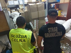Natomiast funkcjonariusze Placówki Straży Granicznej we Wrocławiu – Strachowicach współdziałając z funkcjonariuszami I Referatu Realizacji we Wrocławiu oraz IV Referatu Realizacji w Zgorzelcu DUCS KAS ujawnili na terenie województwa dolnośląskiego wyroby akcyzowe w postaci papierosów bez polskich znaków akcyzy w ilości 400 124 szt. oraz ponad 24 kg tytoniu o szacunkowej wartości 292 tyś zł. Ujawniono także pistolet gazowy Walther PPK.