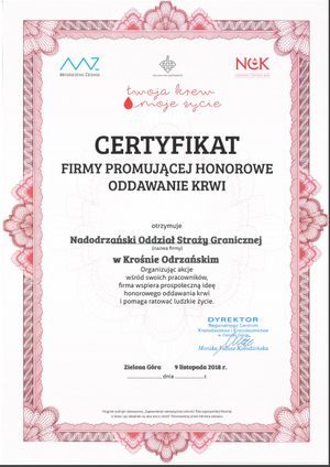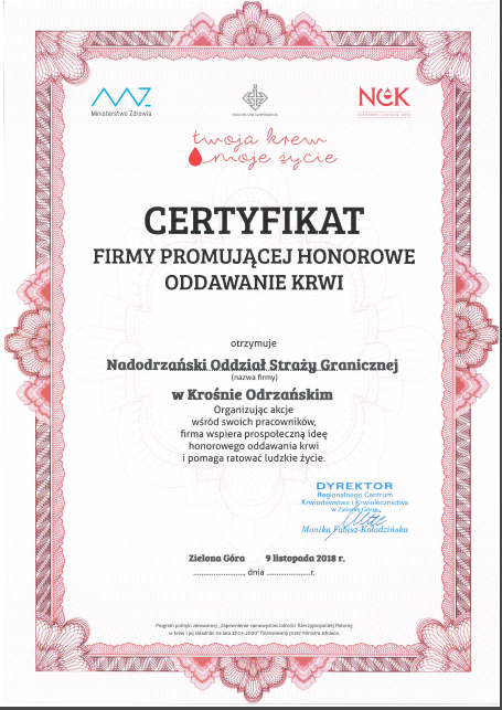 W dniu 30.11.2018 r. planowana jest 5 już zbiórka krwi, która odbędzie się na terenie Komendy Nadodrzańskiego Oddziału SG.