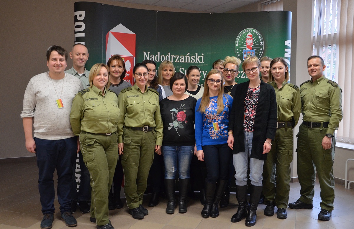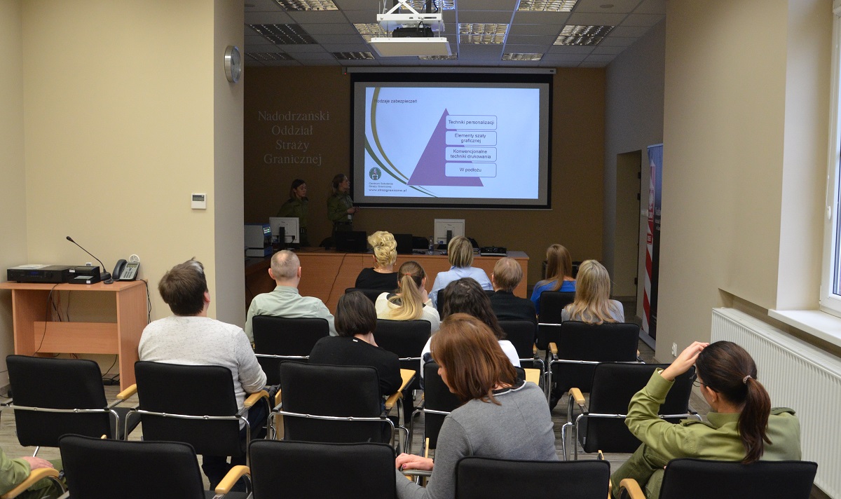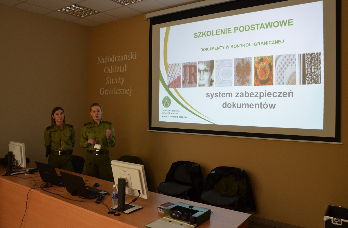 W siedzibie Komendy Nadodrzańskiego Oddziału Straży Granicznej przeprowadzone zostało szkolenie na temat „Badanie autentyczności dokumentów w postępowaniach dotyczących legalizacji pobytu cudzoziemców”. Szkolenie to dedykowane było dla pracowników Lubuskiego Urzędu Wojewódzkiego w Gorzowie Wielkopolskim, którzy na co dzień zajmują się postępowaniami administracyjnymi dotyczącymi wydawania zezwoleń cudzoziemcom na pobyt w Polsce. Przeprowadzone szkolenie miało na celu przede wszystkim zaznajomić urzędników z dokumentami, na podstawie których cudzoziemcy mogą leganie przebywać na terytorium Polski. Dodatkowo przedstawione zostały zabezpieczenia występujące w autentycznych dokumentach, omówione najczęściej występujące fałszerstwa dokumentów i błędy popełniane przez osoby, które takie dokumenty wytwarzają. Prowadzący szkolenie funkcjonariusze, przedstawili również możliwości wykorzystywanego sprzętu używanego przez funkcjonariuszy Straży Granicznej w celu weryfikacji autentyczności dokumentów. Dwudniowe szkolenie w założeniu miało nie tylko przekazanie wiedzy teoretycznej na temat zabezpieczeń używanych w dokumentach ale również zajęcia w formie praktycznej. Na lotnisku w Babimoście pracownicy LUW mieli możliwość samodzielnego dokonywania weryfikacji dokumentów wykorzystując do tego specjalistyczny sprzęt.