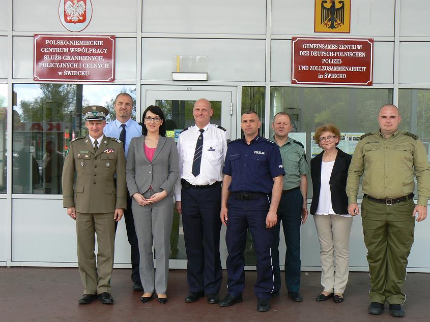 Po przejeździe do Świecka Wojewoda Lubuski Katarzyna Osos i Komendant Nadodrzańskiego Oddziału SG gen. bryg. SG Andrzej Kamiński złożyli wizytę w Polsko – Niemieckim Centrum Współpracy Służb Granicznych, Policyjnych i Celnych. Wojewodę zapoznano także z zadaniami realizowanymi przez wspólną polsko – niemiecką placówkę z mieszaną obsadą.