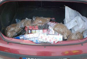 Funkcjonariusze podczas działań prowadzonych w powiecie zgorzeleckim zatrzymali do kontroli samochód marki Renault Megane. Jak się wkrótce okazało kierowca, 24-letni mieszkaniec województwa dolnośląskiego, przewoził wyroby tytoniowe bez polskich znaków akcyzy. W samochodzie zabezpieczono 230 paczek papierosów różnych marek i 5,5 kg tytoniu.