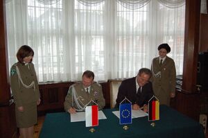 Komendant Główny Straży Granicznej i Prezydent Policji Federalnej podpisali porozumienia o powołaniu wspólnych polsko- niemieckich placówek, wspólnych patroli oraz o powołaniu wspólnych grup operacyjno-śledczych. Szefowie służb złożyli podpisy także pod znowelizowaną koncepcją współpracy między Strażą Graniczną RP a Policją Federalną RFN. Dokumenty te stanowią podstawę do działania według jednolitych standardów w celu realizacji polityki bezpieczeństwa Unii Europejskiej, a oparta na nich współpraca obejmuje swoim zakresem zapobieganie i zwalczanie nielegalnej migracji, przestępczości transgranicznej, a także - adekwatnie do sytuacji - zagrożeń o charakterze terrorystycznym.