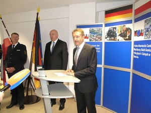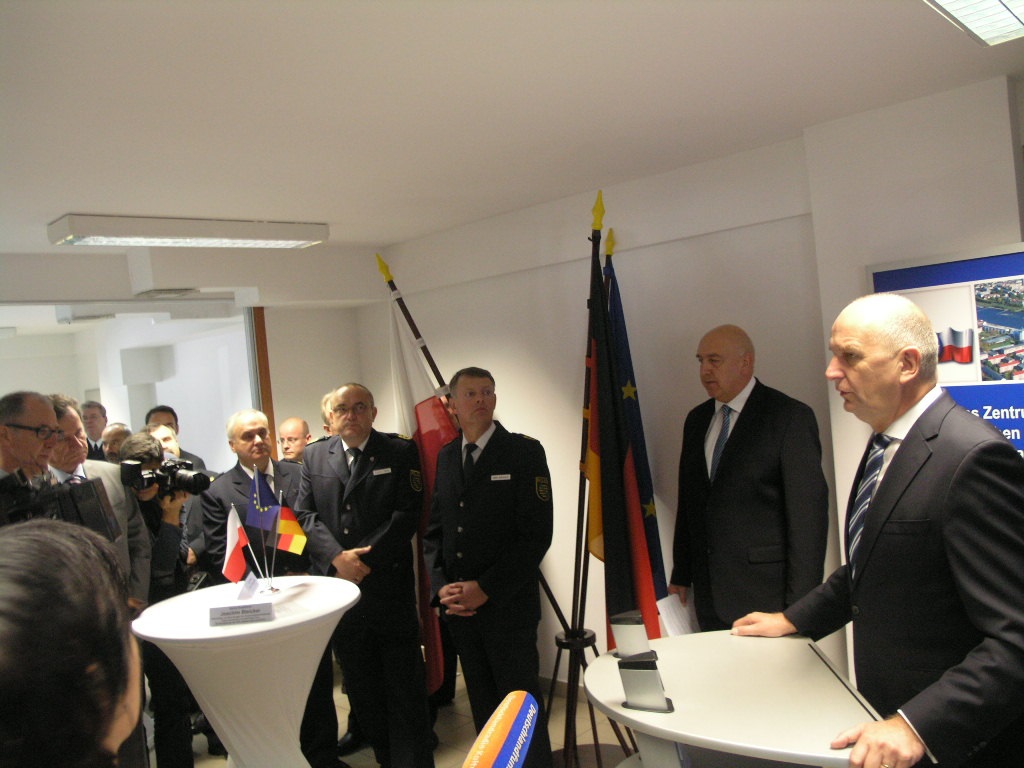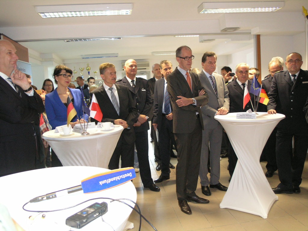 Gości przywitali dr Dietmar Woidke jako Koordynator Niemiecko – Polskiej Współpracy Międzyspołecznej i Przygranicznej oraz Pani Katarzyna Osos – w imieniu Koordynatora ds. Polsko – Niemieckiej Współpracy Regionalnej i Przygranicznej Piotra Stachańczyka. Następnie głos zabrali Minister Spraw Wewnętrznych Landu Brandenburgia Karl – Heinz Schröter oraz Komendant Nadodrzańskiego Oddziału SG – gen. bryg. SG Andrzej Kamiński.
