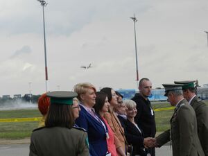 Krótki pokaz działania w sytuacji zagrożenia bezpieczeństwa na lotnisku zaprezentowali funkcjonariusze z Grupy Bezpieczeństwa Lotów, a na zakończenie uroczystości pojawił się jubileuszowy tort okolicznościowy.