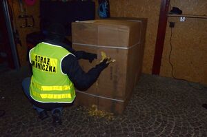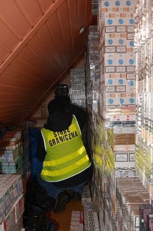 Funkcjonariusze Straży Granicznej w jednej z miejscowości powiatu jeleniogórskiego zatrzymali do kontroli osobowego volkswagena. Ponieważ w pojeździe ujawniono 300 paczek papierosów bez polskiej akcyzy, strażnicy graniczni podjęli decyzję o przeszukaniu również innych miejsc, w których mogły znajdować się towary akcyzowe. Podczas przeszukania prywatnej posesji funkcjonariusze zabezpieczyli w pomieszczeniu gospodarczym susz tytoniowy i spirytus, a w budynku mieszkalnym odkryli skrytki zawierające papierosy różnych marek i krajankę tytoniową. Dodatkowo, w innym miejscu, zabezpieczono kolejne 1,5 tony tytoniu, a także maszynę do produkcji krajanki.