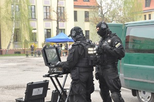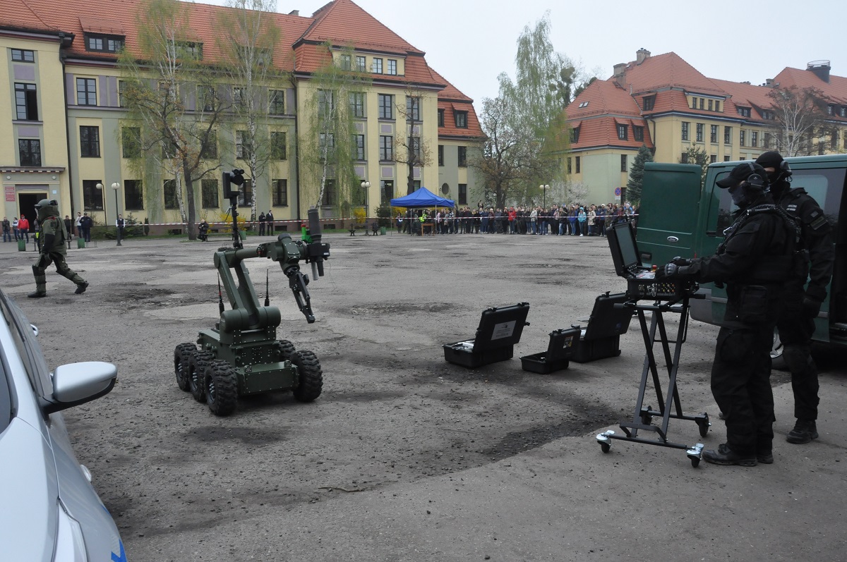 Scenariusz spotkania obejmował ewakuację z budynku w związku z ujawnieniem niebezpiecznego ładunku. Funkcjonariusze Zespołu Interwencji Specjalnych Grupy Bezpieczeństwa Lotów z Placówki Straży Granicznej we Wrocławiu-Strachowicach przeszukali budynek, zlokalizowali niebezpieczny pakunek, a następnie bezpiecznie przetransportowali i zneutralizowali przedmiot z wykorzystaniem wyrzutnika pirotechnicznego z ładunkiem wodnym. Uczestnicy spotkania mieli wyjątkową okazję zobaczyć funkcjonariuszy podczas działań z niebezpiecznym ładunkiem. Całość spotkania została doceniona przez słuchaczy, którzy pracę naszych funkcjonariuszy nagrodzili gromkimi brawami. Organizatorami #bezpiecznie poza Uniwersytetem Wrocławskim byli: Nadodrzański Oddział Straży Granicznej, Komenda Miejska Policji we Wrocławiu, Służba Więzienna, Straż Pożarna oraz Centrum Ratownictwa Medycznego.