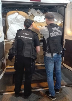 Wczoraj, tj. 17.05.2017r., funkcjonariusze z Placówki SG w Tuplicach podczas wspólnych działań z lubuskimi funkcjonariuszami KAS, zatrzymali do kontroli drogowej samochód Citroen Jumper, na polskich numerach rejestracyjnych. W trakcie kontroli w części ładunkowej pojazdu ujawniono suszone liście tytoniu w ilości 2025 kg. Wartość rynkową towaru funkcjonariusze oszacowali na 930.000 zł. Kierowcę pojazdu, 33-letniego obywatela RP. oraz zatrzymany towar przekazano funkcjonariuszom Krajowej Administracji Skarbowej w Zielonej Górze, którzy prowadzić będą dalsze postępowanie.