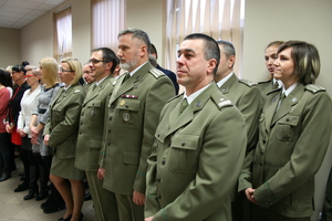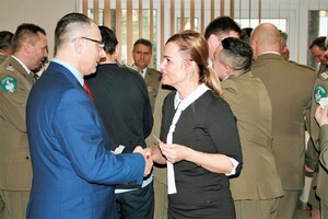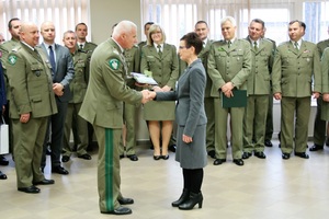 W trakcie spotkania gen. bryg. SG Wojciech Skowronek w obecności Komendanta Placówki SG w Kłodzku mjr SG Piotra Piekarskiego wręczył Pani Marii Rochewicz pamiątkowy ryngraf z okazji 35-lecia pracy. Komendant NoOSG podziękował Pani Marii Rochewicz-pracownikowi Placówki SG w Kłodzku, za obowiązkowość oraz rzetelne podejście do wykonywanych obowiązków oraz złożył życzenia zdrowia, satysfakcji z pracy oraz kolejnych jubileuszy.