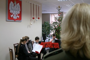 Spotkanie opłatkowe uświetnił koncert kolęd w wykonaniu uczniów Szkoły Muzycznej w Krośnie Odrzańskim. Przed wigilijnym poczęstunkiem wszyscy obecni podzielili się opłatkiem życząc sobie zdrowia, spokoju i pomyślności w życiu zawodowym i prywatnym. Na spotkaniu opłatkowym był także Burmistrz Krosna Odrzańskiego Marek Cebula, który również złożył wszystkim obecnym życzenia. Nie zabrakło także reprezentantów współpracujących ze Strażą Graniczną instytucji oraz służb mundurowych – w spotkaniu uczestniczyli Prokurator Rejonowy w Krośnie Odrzańskim Rafał Suchorski, kapelan garnizonowy Krosna Odrzańskiego ks. ppłk Jan Zapotoczny, Zastępca Komendanta 44. Wojskowego Oddziału Gospodarczego w Krośnie Odrzańskim ppłk Roman Lewandowski, Dowódca 5 Kresowego Batalionu Saperów ppłk SG Sławomir Osmelak oraz Pani Dyrektor Szkoły Muzycznej w Krośnie Odrzańskim Iwona Dobryniewska.