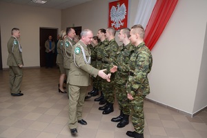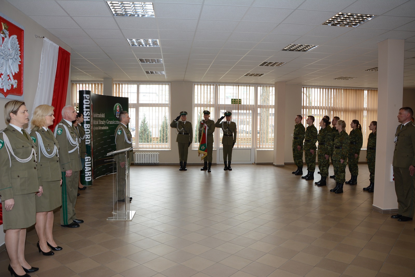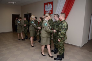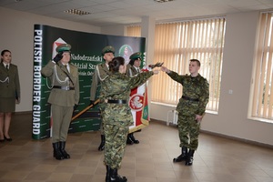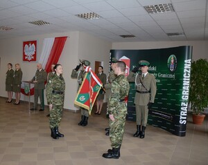 Gen. bryg. SG Wojciech Skowronek - Komendant Nadodrzańskiego Oddziału Straży Granicznej odebrał ślubowanie od 8 nowo przyjętych funkcjonariuszy. Uroczystość odbyła się w Komendzie NoOSG w Krośnie Odrzańskim z udziałem pocztu sztandarowego, kadry kierowniczej NoOSG, rodzin funkcjonariuszy oraz zaproszonych gości. Komendant, pogratulował ślubującym wstąpienia w szeregi Nadodrzańskiego Oddziału Straży Granicznej i wyraził nadzieję, że słowa roty ślubowania staną się dla nich zobowiązaniem do wytrwałej służby dla naszej ojczyzny. Podkreślił, że zakładając mundur funkcjonariusza Straży Granicznej należy pamiętać, by nosić go z dumą i szacunkiem. Zaznaczył, że każdy funkcjonariusz powinien strzec dobrego imienia służby, honoru i godności. Komendant NoOSG gen.bryg. SG Wojciech Skowronek skierował również podziękowania i gratulacje rodzicom ślubujących funkcjonariuszy. Już za kilka dni funkcjonariusze, którzy dzisiaj ślubowali rozpoczną kilkumiesięczne szkolenie, po którym zostaną skierowani do pełnienia służby w Placówkach Nadodrzańskiego Oddziału Straży Granicznej.