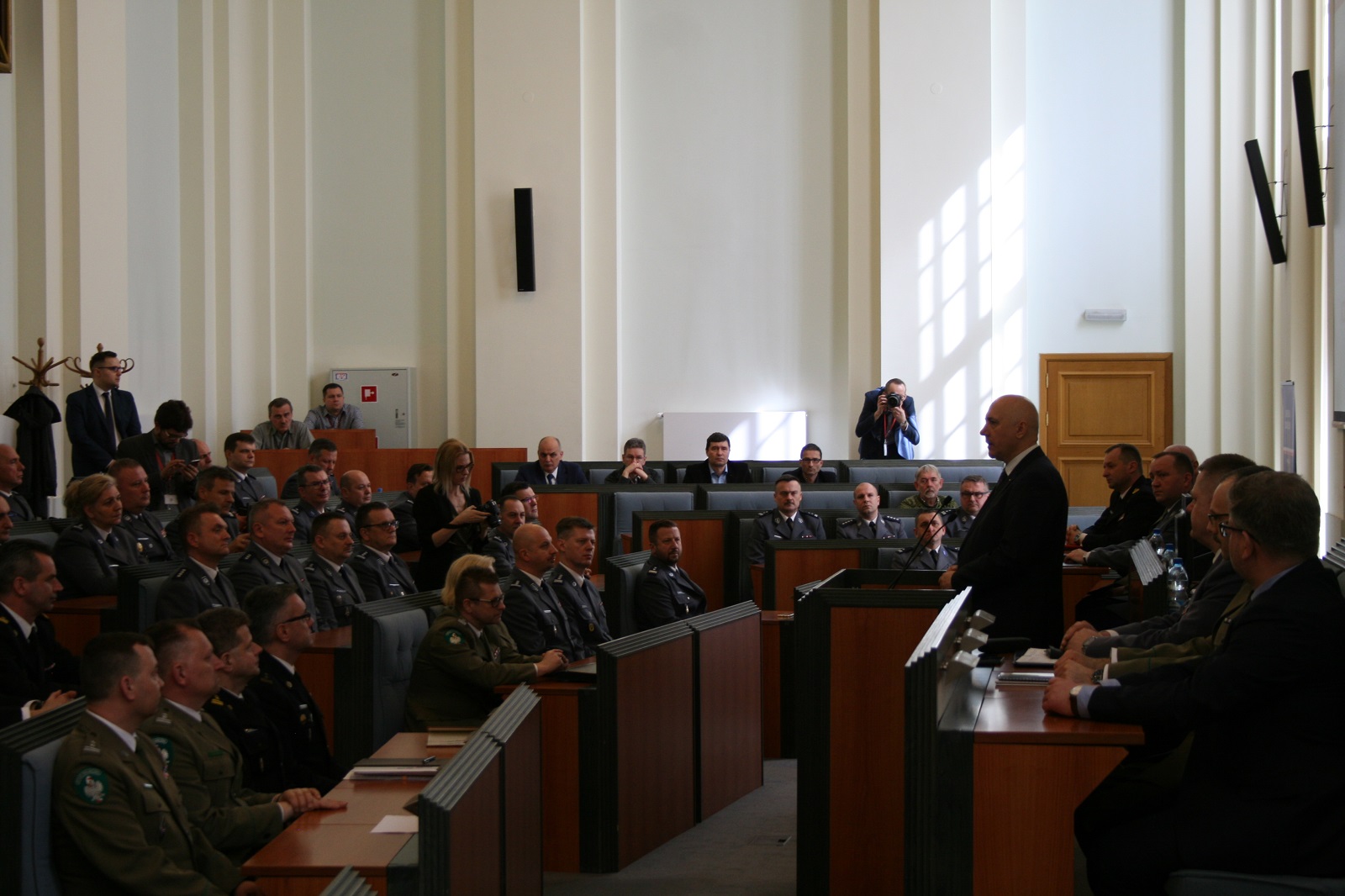 Minister Joachim Brudziński przypomniał, że stawia przed komendantami zadanie dbania o honor służb im podległych. – Tak jak cieszą wysokie współczynniki poziomu zaufania i poczucia bezpieczeństwa obywateli, tak samo należy się smucić z tego, jeżeli w Państwa szeregach znajdą się, pojedyncze na szczęście, przypadki naruszenia honoru i zaufania do służb – powiedział. Zaznaczył, że oczekuje bezwzględnej eliminacji tych postaw. Podkreślił, że funkcjonariusze mają jego pełne wsparcie. W swoim wystąpieniu odniósł się także do naboru kandydatów do służby. To zawsze musi być nabór pozytywny. Zarówno do Policji, Straży Pożarnej, oraz Straży Granicznej mają trafiać najlepsi.