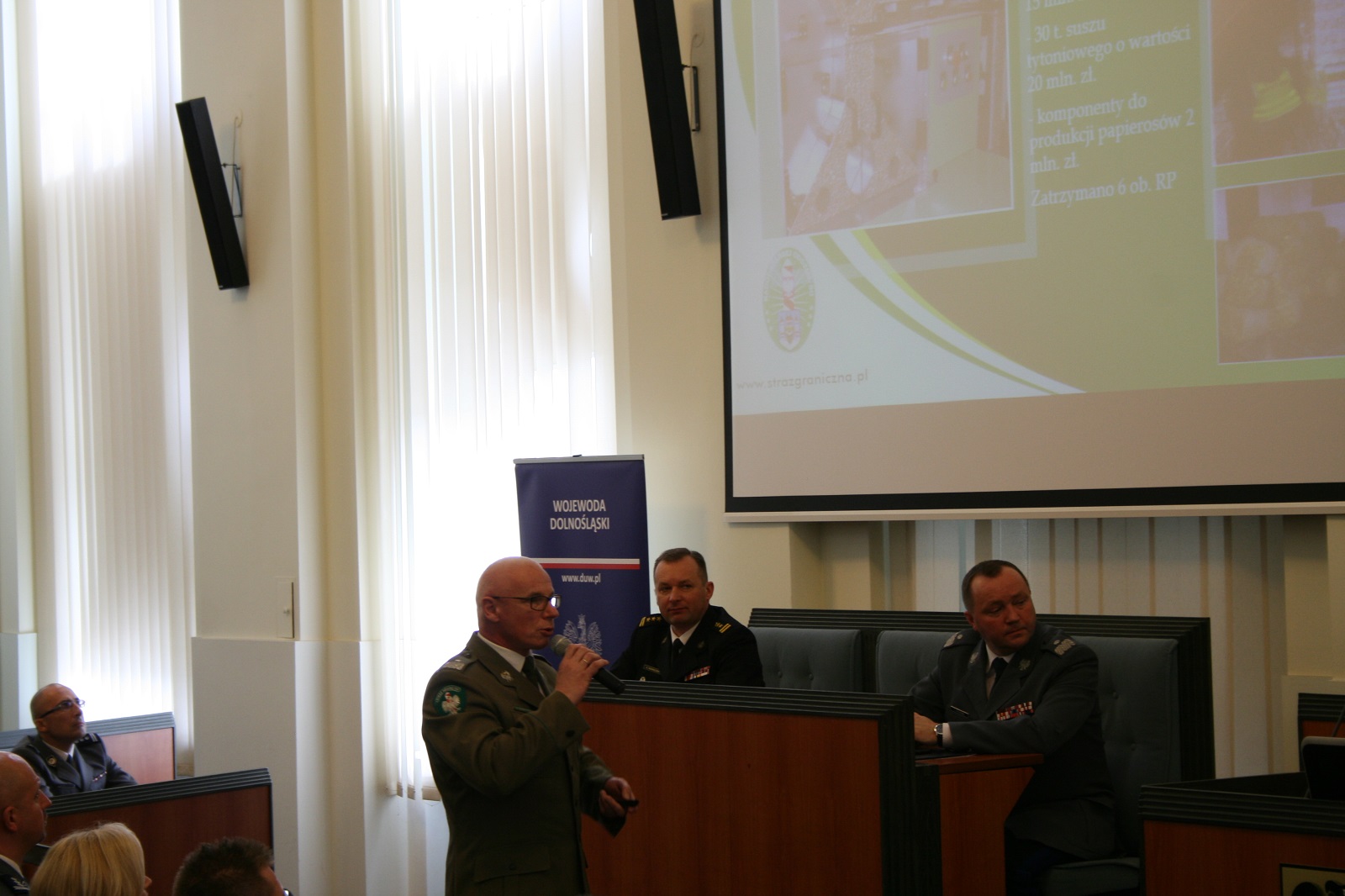Komendant Nadodrzańskiego Oddziału Straży Granicznej gen.bryg. SG Wojciech Skowronek podczas swojego wystąpienia wskazał, że na terenie województwa dolnośląskiego NoOSG operuje w oparciu o 5 Placówek Straży Granicznej z siedzibami w Zgorzelcu, Wrocławiu, Legnicy, Jeleniej Górze oraz w Kłodzku. Funkcjonariusze tych placówek ogółem zatrzymali/ujęli ponad 3100 osób m.in. za nielegalny pobyt oraz pracę wykonywaną niezgodnie z przepisami. Tylko na obszarze województwa dolnośląskiego zabezpieczono nielegalne towary o wartości przeszło 61 000 000 zł.