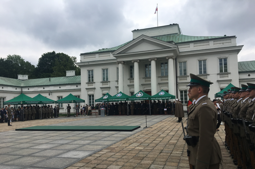 W południe na dziedzińcu przed Belwederem odbył się uroczysty apel. Komendant Główny Straży Granicznej gen. bryg. SG Tomasz Praga przywitał gości, którzy przybyli na uroczystość, mi.in. Ministra Spraw Wewnętrznych i Administracji Joachima Brudzińskiego wraz z Sekretarzem Stanu w MSWiA Jarosławem Zielińskim, Szefową Kancelarii Prezydenta Rzeczypospolitej Polskiej Halinę Szymańską, Podsekretarza Stanu w MON Marka Łapińskiego, Zastępcę Szefa Sztabu Generalnego Wojska Polskiego gen. broni Michała Sikorę, przedstawicieli obu izb Parlamentu Rzeczypospolitej Polskiej, szefów polskich służb mundurowych, przedstawicieli zagranicznych służb z Węgier, Austrii, Słowacji i Litwy, a także przedstawicieli duchowieństwa: Biskupa Polowego Wojska Polskiego gen. bryg. Józefa Guzdka, Prawosławnego Ordynariusza Wojskowego Jerzego Pańkowskiego oraz Ewangelickiego Biskupa Wojskowego płk. Mirosława Wolę.