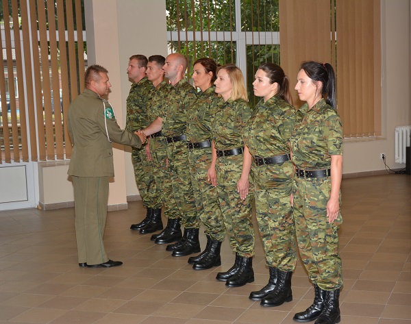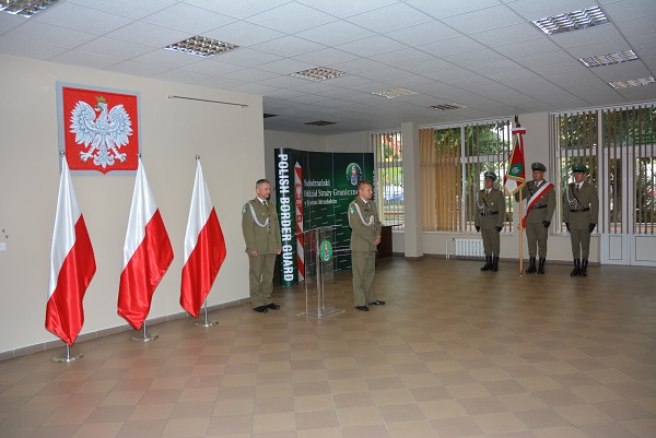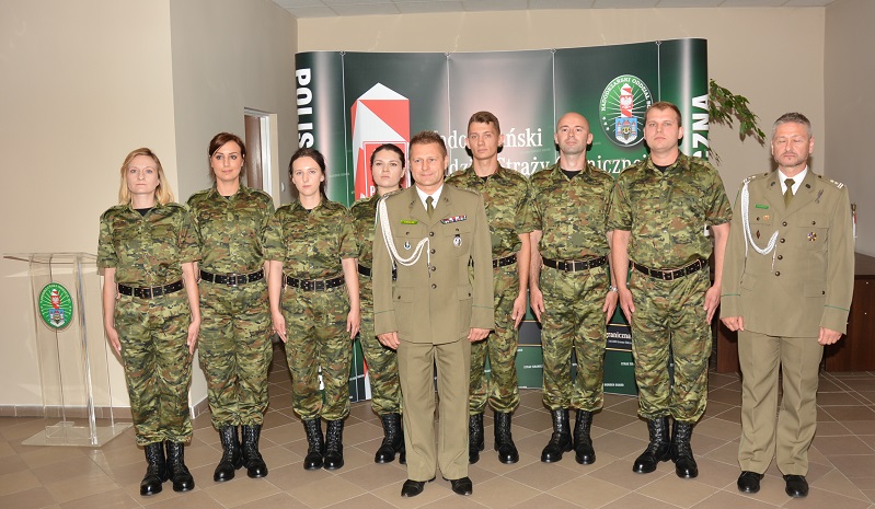 Płk SG Tomasz Michalski – Zastępca Komendanta Nadodrzańskiego Oddziału Straży Granicznej odebrał ślubowanie od 7 funkcjonariuszy. Uroczystość odbyła się w Komendzie NoOSG w Krośnie Odrzańskim z udziałem pocztu sztandarowego, kadry kierowniczej i rodzin funkcjonariuszy. Zastępca Komendanta pogratulował ślubującym wstąpienia w szeregi Nadodrzańskiego Oddziału Straży Granicznej i wyraził nadzieję, że słowa roty ślubowania staną się dla nich zobowiązaniem do wytrwałej służby dla naszej ojczyzny. Podkreślił, że zakładając mundur funkcjonariusza Straży Granicznej należy pamiętać, by nosić go z dumą i szacunkiem. Zaznaczył, że każdy funkcjonariusz powinien strzec dobrego imienia służby, honoru i godności. Płk SG Tomasz Michalski skierował również podziękowania i gratulacje rodzicom ślubujących funkcjonariuszy, a także prosił, aby wspierali nowo przyjętych funkcjonariuszy w drodze, którą wybrali. Już za kilka dni funkcjonariusze, którzy dzisiaj ślubowali, rozpoczną kilkumiesięczne szkolenie, po którym zostaną skierowani do pełnienia służby w wybranych Placówkach Nadodrzańskiego Oddziału Straży Granicznej.