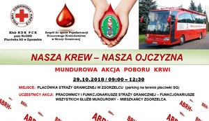 29 października 2018 r. w godzinach 9:30. – 12:30 na terenie Placówki Straży Granicznej w Zgorzelcu (ul. Bohaterów II Armii Wojska polskiego 14), odbędzie się akcja odawania krwi. Do podzielenia się Darem Serca zaproszeni są w szczególności funkcjonariusze wszystkich służb mundurowych oraz mieszkańcy Zgorzelca.