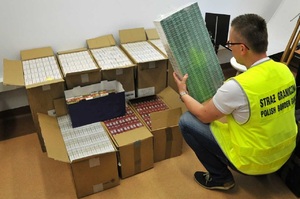 Funkcjonariusze z Placówki Straży Granicznej w Kłodzku w okolicy miejscowości Bardo zatrzymali do kontroli samochód osobowy. W trakcie kontroli funkcjonariusze zwrócili uwagę na ładunek, który przewożony był wewnątrz auta. Jak się okazało, w samochodzie, którym podróżowało dwóch Polaków ujawniono 60 tys. sztuk papierosów bez polskich znaków akcyzy skarbowej. W przeważającej mierze papierosy oznaczone były białoruską banderolą. Do posiadanego towaru o szacunkowej wartości ponad 42 tys. zł. przyznał się 56-letni kierowca zatrzymanego pojazdu - mieszkaniec powiatu kłodzkiego. Ponadto, w trakcie przeszukania innych pomieszczeń należących do mężczyzny funkcjonariusze ujawnili i zabezpieczyli kolejne 16 840 sztuk papierosów wartych prawie 12 tys.zł.