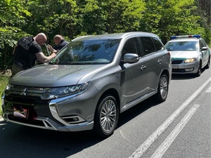 Tego samego dnia, kilka godzin później, funkcjonariusze ze Wspólnej Polsko-Niemieckiej Placówki w Świecku wytypowali do kontroli jadący w głąb Polski samochód osobowy marki Mitsubishi. Patrol przystąpił do zatrzymania pojazdu używając sygnałów świetlnych i dźwiękowych. Kierujący autem w celu uniknięcia kontroli przyspieszył i zaczął uciekać. Po krótkim pościgu został jednak zatrzymany. Jak się okazało autem kierował 21-letni Polak. W trakcie dokonanych sprawdzeń funkcjonariusze ustalili, że auto zostało skradzione na terenie Niemiec. Wewnątrz pojazdu funkcjonariusze ujawnili oryginalne niemieckie tablice rejestracyjne należące do mitsubishi. 21-latek został zatrzymany za poruszanie się pojazdem pochodzącym z kradzieży.
