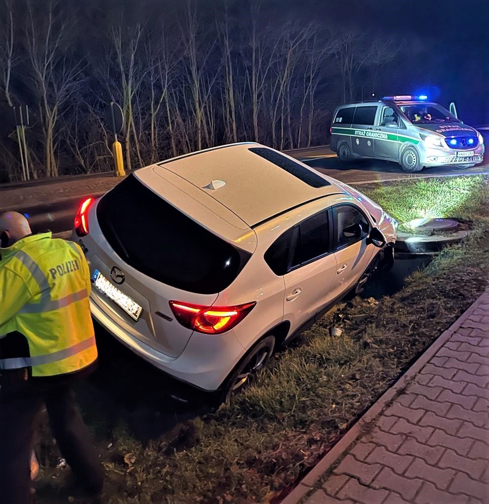 Kolejne auto odzyskali funkcjonariusze ze Wspólnej Polsko-Niemieckiej Placówki w Świecku. Była to Mazda CX5 warta 70 tys. złotych. Kierowca auta podczas ucieczki wjechał do rowu rozbijając samochód o studzienkę melioracyjną. Jak się okazało pojazdem kierował 23-letni Polak.