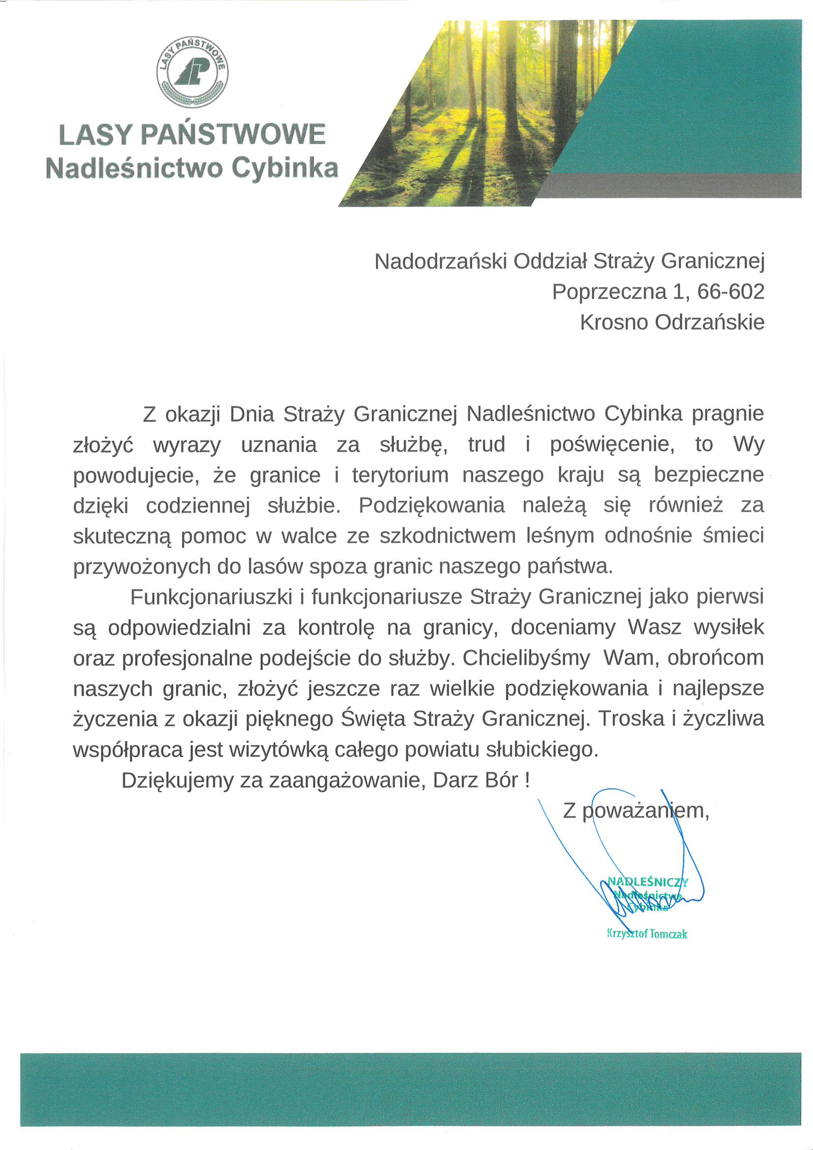 Życzenia skierowane przez Nadleśniczego Nadleśnictwa Cybinka -