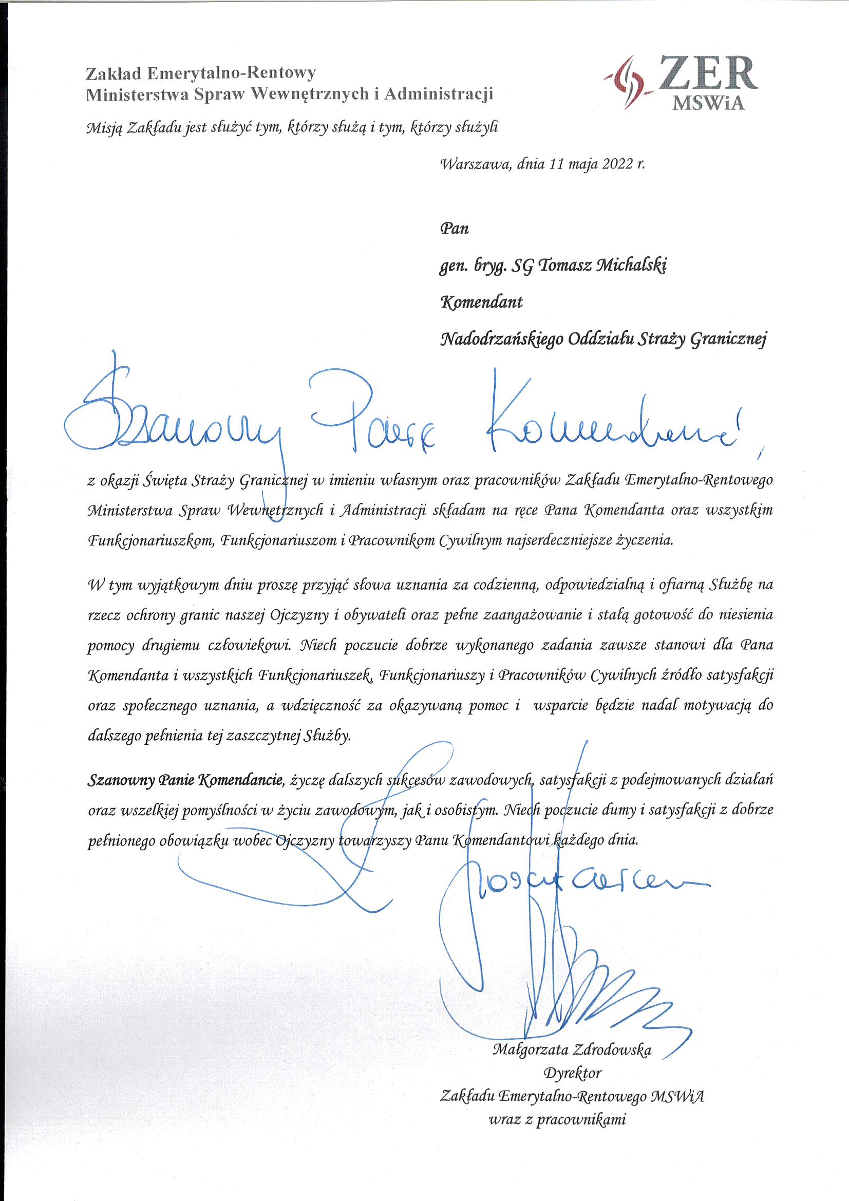 Życzenia skierowane przez Panią Dyrektor Zakładu Emerytalno-Rentowego MSWiA -