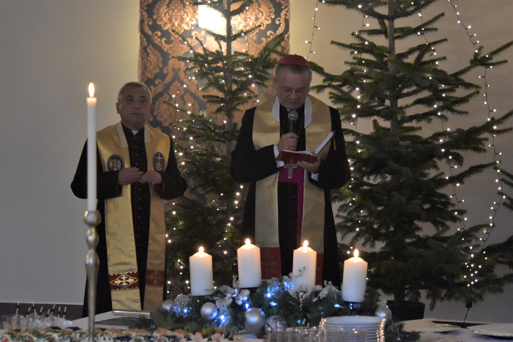 Modlitwa na spotkaniu opłatkowym lubuskich służb mundurowych w siedzibie gorzowskiej policji -