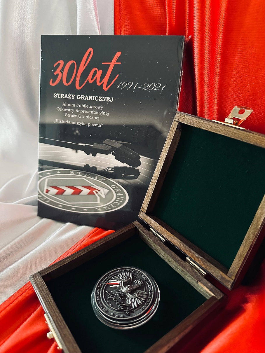 - album jubileuszowy Orkiestry Reprezentacyjnej SG pn. „Historia muzyką pisana” wydana z okazji jubileuszu 30-lecia SG. Wraz z moneta okolicznościowa Straży Granicznej wydana z okazji 100-rocznicy odzyskania przez Polskę Niepodległości https://allegro.pl/oferta/pamiatkowy-zestaw-numizmatyczny-17115686940