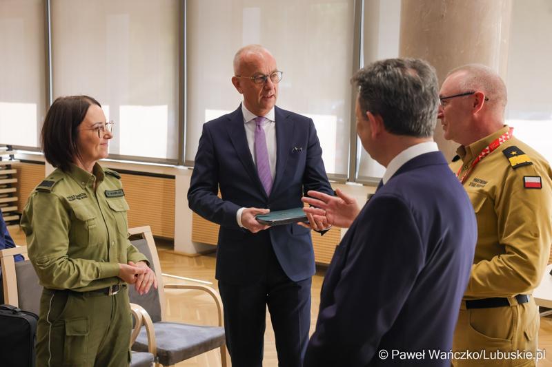 Wczoraj (12 maja) w Zielonej Górze odbyła się sesja Sejmiku Województwa Lubuskiego Urzędu Marszałkowskiego Województwa Lubuskiego, która zgromadziła przedstawicieli władz samorządowych oraz służb odpowiedzialnych za bezpieczeństwo publiczne w regionie. Sesję poprowadził Marszałek Województwa Lubuskiego Marcin Jabłoński. W wydarzeniu uczestniczyli przedstawiciele służb mundurowych: Komendant Nadodrzańskiego Oddziału Straży Granicznej gen. bryg. SG Monika Musielak, Komendant Wojewódzki Policji insp. Jerzy Czebreszuk oraz Lubuski Komendant Wojewódzki Państwowej Straży Pożarnej nadbryg. Janusz Drozda.