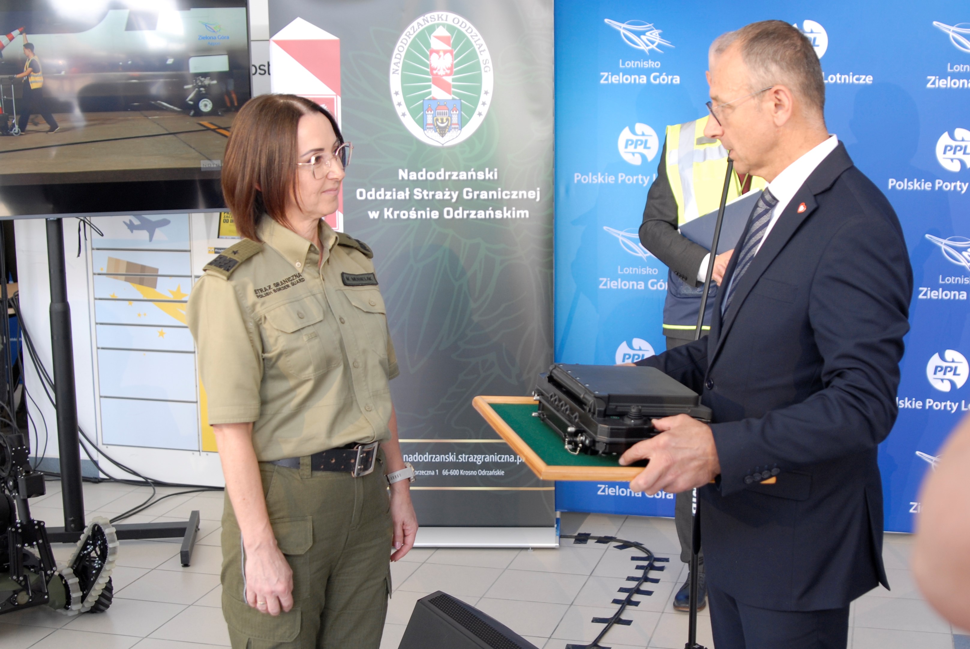 Na terenie lotniska Zielona Góra-Babimost 13 czerwca odbyła się uroczystość przekazania przez Wojewodę Lubuskiego Marka Cebulę specjalistycznego robota pirotechnicznego funkcjonariuszom Nadodrzańskiego Oddziału Straży Granicznej. W wydarzeniu, oprócz Wojewody Lubuskiego Marka Cebuli i Komendanta Nadodrzańskiego Oddziału SG gen. bryg. SG Moniki Musielak, udział wzięli także reprezentanci władz lokalnych, samorządowcy, przedstawiciele spółki Polskie Porty Lotnicze oraz dyrekcja zielonogórskiego lotniska.