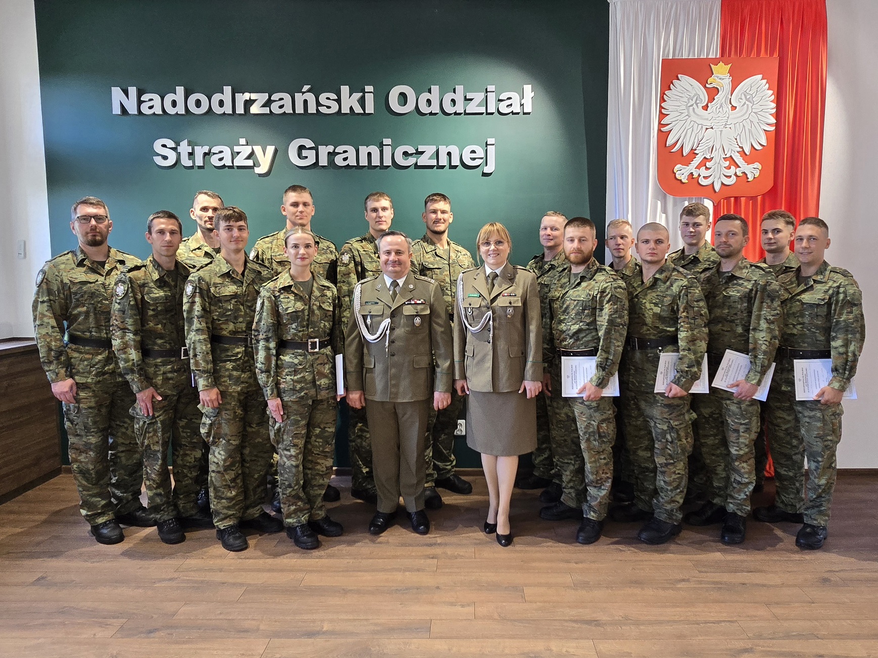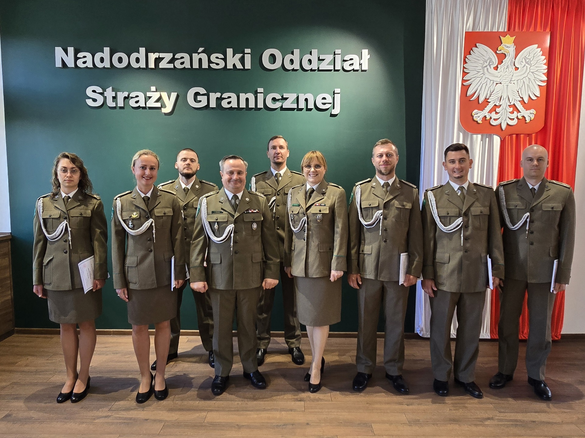 W Sali Tradycji Komendy Nadodrzańskiego Oddziału Straży Granicznej 11 sierpnia miała miejsce uroczystość wręczenia aktów mianowania na stopień Straży Granicznej 19 absolwentom szkoły chorążych i 23 absolwentom szkoły podoficerskiej. Zastępca Komendanta Nadodrzańskiego Oddziału SG płk SG Krzysztof Krawiec wręczył nowym chorążym akty mianowania na stopień młodszego chorążego Straży Granicznej oraz absolwentom szkoły podoficerskiej - akty mianowania na stopień kaprala Straży Granicznej. Funkcjonariusze SG odebrali akty mianowania w obecności kadry kierowniczej Nadodrzańskiego Oddziału SG.