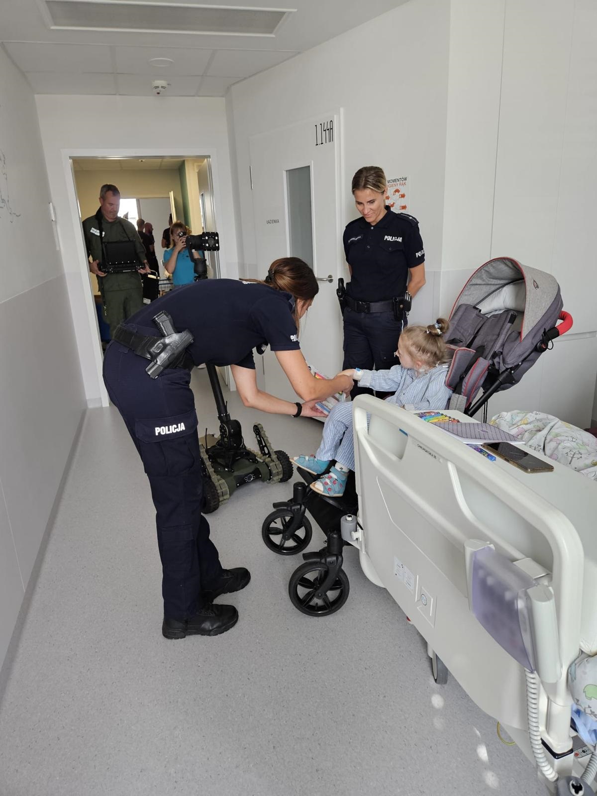 Mali pacjenci otrzymali wyprawki, które mamy nadzieję szybko trafią do ich szkolnych piórników. Największą atrakcją okazał się jednak pokaz działania robota pirotechnicznego Gryf, obsługiwanego przez funkcjonariusza z Zespołu Interwencji Specjalnych poznańskiej placówki Straży Granicznej. To była nie tylko edukacyjna, ale i pełna radości chwila – zarówno dla dzieci, jak i dorosłych.