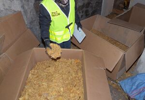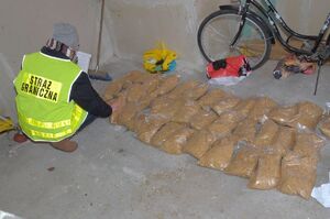 W wyniku przeszukania dokonanego w miejscu zamieszkania wskazanej osoby ujawniono 20 kg krajanki tytoniowej i 800 kg liści tytoniu. Dodatkowo zabezpieczono sprzęt do konfekcjonowania wyprodukowanej krajanki.