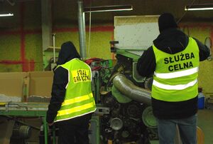 W chwili, gdy funkcjonariusze wkroczyli na teren posesji, trzech mężczyzn pakowało do samochodu dostawczego kartony wypełnione papierosami bez polskich znaków akcyzy. W trakcie dalszej kontroli okazało się, że w pomieszczeniach gospodarczych znajdującego się na posesji budynku, zorganizowano nielegalną fabrykę papierosów. Na miejscu znajdowały się dwie kompletne linie technologiczne wyposażone w specjalistyczne maszyny używane przy produkcji papierosów: jedna do obróbki tytoniu, druga do napełniania gilz papierosowych przygotowanym tytoniem. W fabryce obecni byli również dwaj mężczyźni obsługujący urządzenia. W sąsiednim budynku ujawniono profesjonalnie wyposażone pomieszczenie, w którym suszono i przechowywano tytoń.