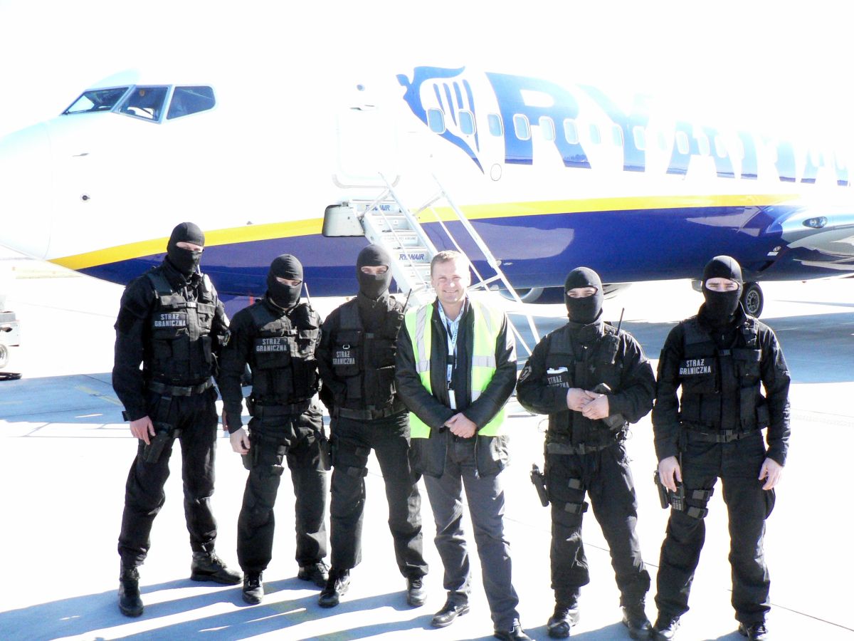W miesiącu marcu Zespół Interwencji Specjalnych z Placówki Straży Granicznej we Wrocławiu – Strachowicach realizuje cykl szkoleń z zakresu podejmowania interwencji na pokładzie statku powietrznego w oparciu o pokład samolotu Boeing 737-800. Komendant Placówki ppłk SG Artur Maliński w imieniu funkcjonariuszy ZIS zwrócił się z prośbą do irlandzkiego przewoźnika lotniczego Ryanair o umożliwienie zapoznania się z pokładem Boeinga 737-800 będącego we flocie firmy.