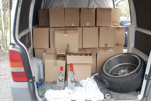 W jednym z wytypowanych do kontroli pojazdów typu bus, w części ładunkowej, funkcjonariusze ujawnili 600 butelek wypełnionych alkoholem niewiadomego pochodzenia, każda o pojemności 1 litra. Łączną wartość zabezpieczonego, nielegalnego alkoholu oszacowano na 21 000 zł. Kierowcą okazał się obywatel Szwecji. Mężczyźnie przedstawiono zarzut nielegalnego przewożenia wyrobów akcyzowych zgodnie z kodeksem karno-skarbowym.