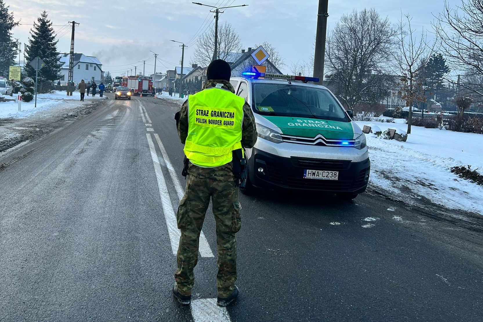 Do czasu przybycia właściwych służb funkcjonariusze z Placówki SG w Kaliszu zabezpieczali teren wypadku, dbając o bezpieczeństwo uczestników ruchu drogowego.