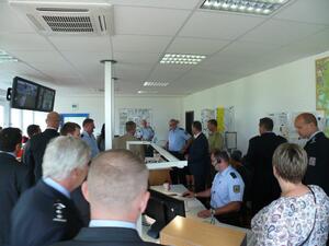 Goście zapoznali się z prawnymi podstawami, organizacją i praktycznym wprowadzaniem projektu, a także z działaniem funkcjonariuszy w jego ramach. Delegacja odwiedziła pomieszczenia, w których polscy i niemieccy funkcjonariusze wspólnie otrzymują zadania i pobierają sprzęt służbowy. Ponadto goście zobaczyli jak wygląda odprawa do służby wspólnego patrolu oraz planowanie służb w ramach pilotażowego projektu.