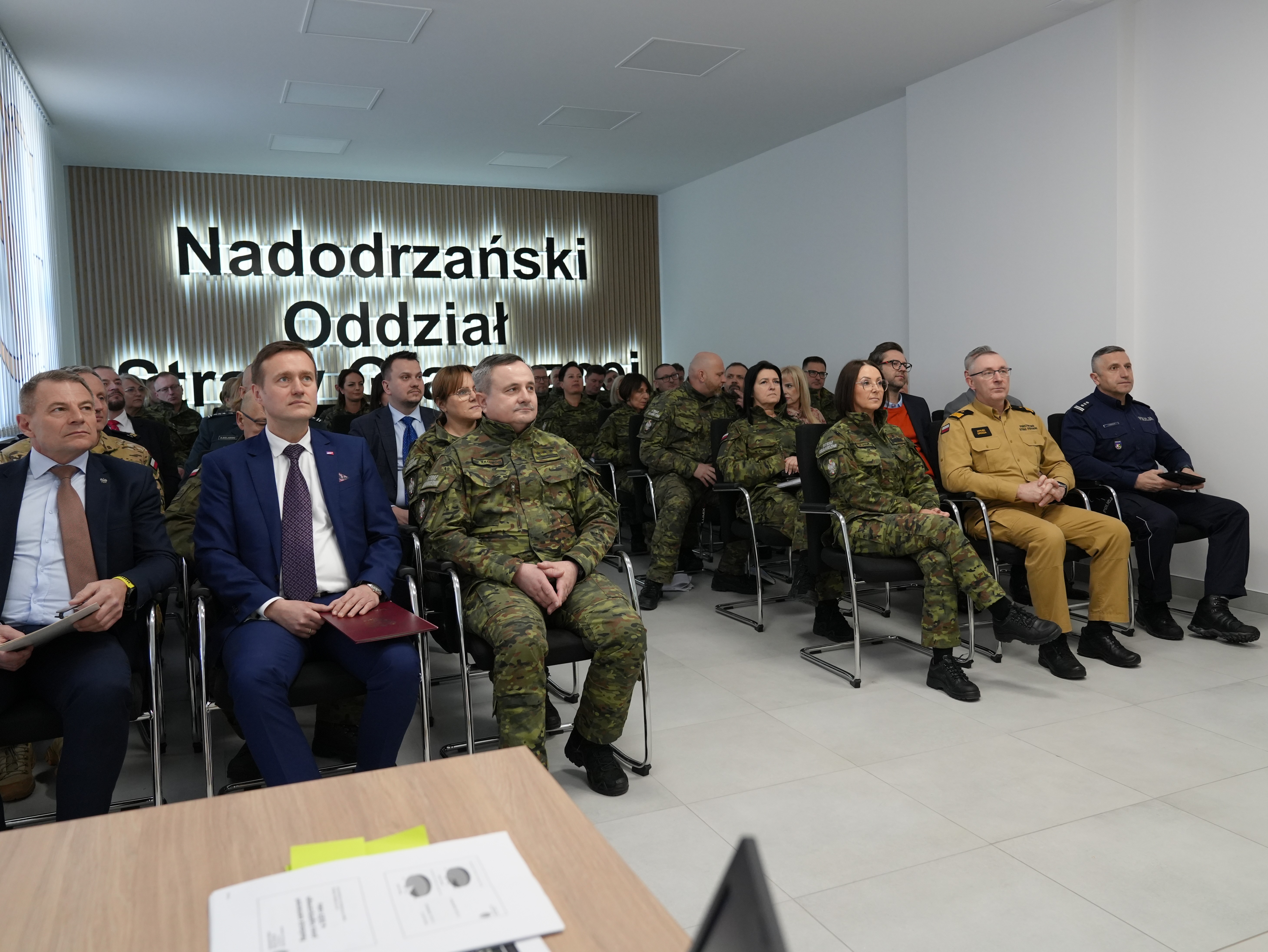 W siedzibie Nadodrzańskiego Oddziału Straży Granicznej w Krośnie Odrzańskim 5 i 6 marca odbyła się odprawa służbowa kadry kierowniczej, podsumowująca działania przeprowadzone w 2025 r. Spotkanie rozpoczęła gen. bryg. SG Monika Musielak Komendant Nadodrzańskiego Oddziału Straży Granicznej. W spotkaniu uczestniczyli Zastępcy Komendanta NoOSG płk SG Krzysztof Krawiec i płk SG Wioletta Kieliszak, jak również zaproszeni goście, m.in. Wicewojewoda Lubuski Tomasz Nesterowicz, Wicewojewoda Dolnośląski Artur Jurkowski, Starosta Krośnieński Anna Januszkiewicz, prokuratorzy - z Prokuratury Okręgowej w Zielonej Górze Robert Gabryszak oraz z prokuratury Okręgowej w Gorzowie Wlkp. Arkadiusz Roćko. W odprawie służbowej nie zabrakło szefów służb mundurowych i sił zbrojnych, z którymi na co dzień współpracują funkcjonariusze NoOSG, jak również kadry kierowniczej oddziału, komendantów placówek oraz przewodniczących związków zawodowych funkcjonariuszy i pracowników NoOSG.