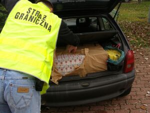 Podczas działań prowadzonych 11 października 2014 r. funkcjonariusze zatrzymali do kontroli samochód osobowy. Okazało się, że w bagażniku auta znajdowały się rosyjskie i białoruskie papierosy – łącznie 88 tysięcy sztuk. Ich wartość oszacowano na kwotę 52 100 zł.