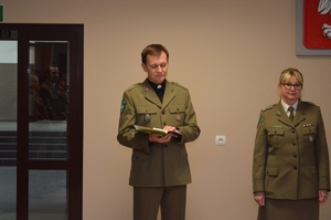 Życzenia zebranym złożył również kapelan NoOSG ks. por. SG Marcin Czuchraniuk, a po okolicznościowej modlitwie obecny o.ppłk Edward Olech zaintonował "Bóg się rodzi".