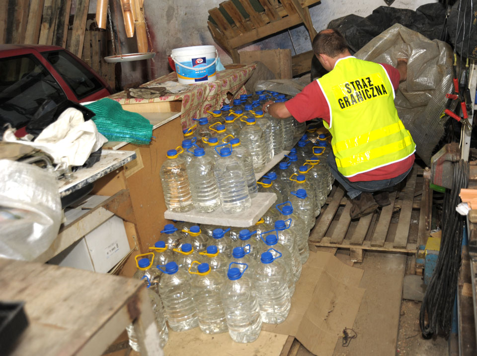 Po ujawnieniu w samochodzie 12 pięciolitrowych pojemników ze spirytusem, w ramach dalszych działań przeszukano pomieszczenia gospodarcze, z których korzystały osoby przewożące nielegalny spirytus i tam ujawniono ponad 500 litrów tej samej substancji. Dodatkowo funkcjonariusze zabezpieczyli 22 000 sztuk papierosów bez polskich znaków akcyzy skarbowej. Ponadto ujawniono etykiety na butelki do wódki, czyste butelki i sfałszowane banderole skarbowe.