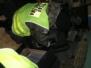W celu dokładnego sprawdzenia przewożonego towaru skierowano samochód i jego kierowcę do Placówki SG w Tuplicach. Po wyładowaniu mebli pies kolejny raz oznaczył wskazaną kanapę. Przystąpiono więc do jej rozebrania. Okazało się, że jest to konstrukcja, wewnątrz której znajdują się paczki szczelnie owinięte ciemną folią. Po ich otworzeniu stwierdzono, że zawierają susz roślinny koloru zielonego, a jedna biały proszek. Substancje przebadano za pomocą narkotestera, który wskazał na marihuanę i kokainę.