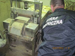 10 lipca br. policjanci Centralnego Biura Śledczego wspólnie z funkcjonariuszami Nadodrzańskiego Oddziału Straży Granicznej, w podszczecińskiej miejscowości, zlikwidowali nielegalną wytwórnię wyrobów tytoniowych. W wyniku przeprowadzonej akcji na terenie prywatnej posesji, w zabudowaniach gospodarczych ujawniono działającą linię produkcyjną służącą do wytwarzania krajanki tytoniowej. Zatrzymano trzech mężczyzn w wieku od 30 do 55 lat, którzy obsługiwali urządzenia produkcyjne. Wytwórnia zajmowała dwa pomieszczenia, jedno stanowiło magazyn liści tytoniu, w drugim znajdowały się maszyny i produkt finalny w postaci krajanki tytoniowej. Łączna waga zabezpieczonego tytoniu to około 4 tony.
