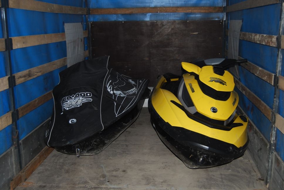 Policjanci z Goleniowa razem z funkcjonariuszami Placówki Straży Granicznej w Szczecinie-Goleniowie odzyskali skradzione na terenie Szwecji 4 skutery wodne. Warte 50000 EURO skutery transportowane były w naczepie.