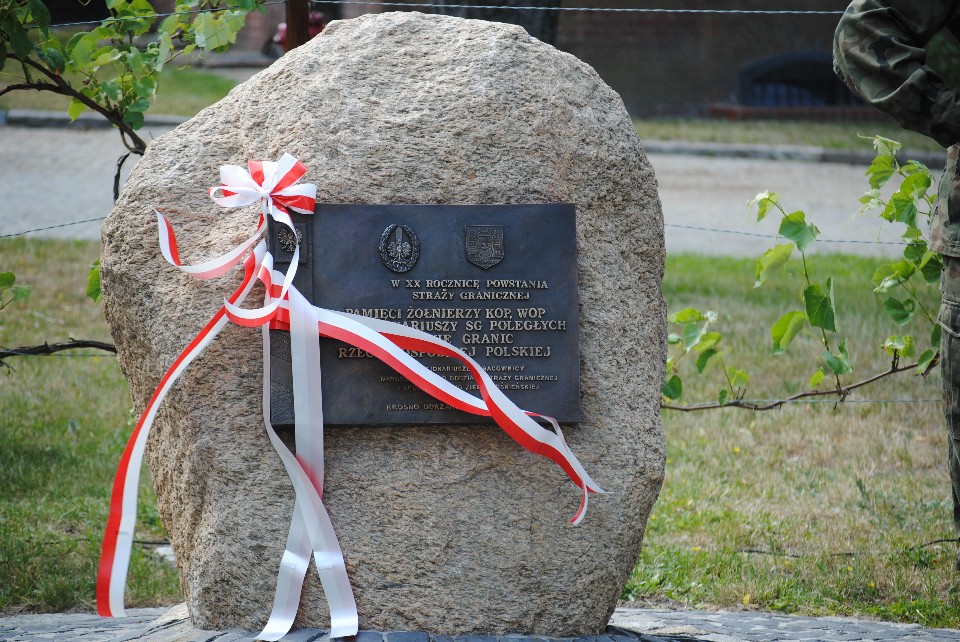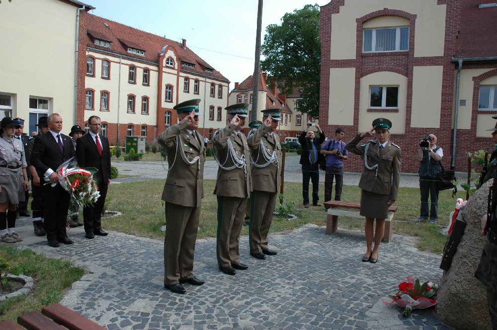 Następnie uczestnicy udali się do kamiennego obelisku, na którym została odsłonięta tablica upamiętniająca funkcjonariuszy KOP, żołnierzy WOP i funkcjonariuszy SG poległych w ochronie granicy państwowej, ufundowana przez mieszkańców ziemi krośnieńskiej. Aktu odsłonięcia dokonali gen. bryg. SG Marek Borkowski – Zastępca Komendanta Głównego SG, płk SG Michał Kogut – Komendant Nadodrzańskiego Oddziału SG, gen. bryg. SG Jarosław Frączyk – Komendant Nadbużańskiego Oddziału SG (były Komendant NoOSG i pomysłodawca ufundowania tablicy), pan Marek Cebula – burmistrz Krosna Odrzańskiego (przedstawiciel fundatorów), pan Jacek Hoffmann – starosta krośnieński (przedstawiciel fundatorów). Złożenie wiązanek kwiatów przed tablicą zakończyło oficjalną część obchodów.