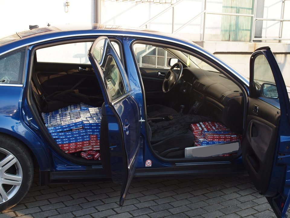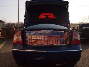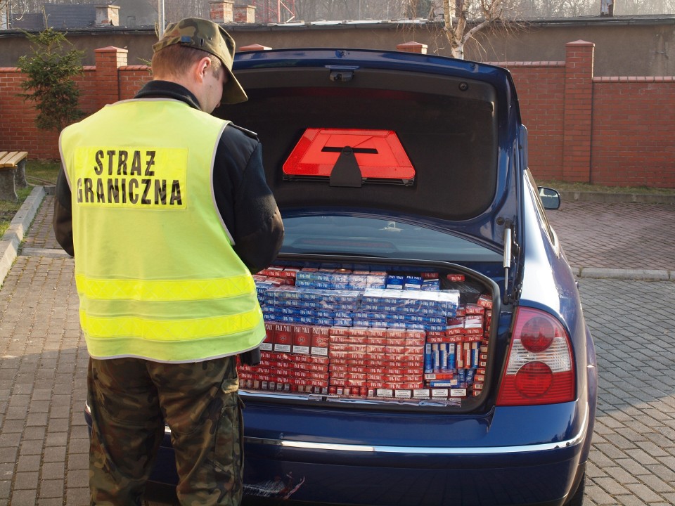 Kierowca VW Passata próbował ominąć kontrolę prowadzoną przez funkcjonariuszy Straży Granicznej zawracając tuż przed nią. I miał powód, w samochodzie przewoził ponad 7000 paczek papierosów bez polskich znaków akcyzy skarbowej. Do zdarzenia doszło wczoraj popołudniu (tj. 22.03), kiedy to funkcjonariusze z Placówki Straży Granicznej w Olszynie wytypowali do kontroli jadący w stronę granicy pojazd na niemieckich numerach rejestracyjnych. Kierowca nie zatrzymał się do kontroli i zawrócił w kierunku Lubska. Drugi patrol funkcjonariuszy zatrzymał samochód wraz z kierowcą. Okazało się, ze przewoził w samochodzie 140 000 sztuk papierosów w paczkach bez polskich znaków akcyzy skarbowej o wartości 65 000 zł.