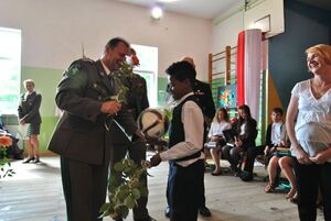 Podczas uroczystego apelu uczniom, którzy osiągnęli najlepsze wyniki w nauce i sporcie, wręczone zostały nagrody ufundowane przez Komendanta Głównego i Komendanta NoOSG. Kończącym szkołę podstawową szóstoklasistom, a także pozostałym uczniom, generałowie życzyli wielu sukcesów i wytrwałości w osiąganiu zamierzonych celów. Na ręce dyrektor, pani Barbary Sikory, przekazane zostały podarunki dla szkoły: pamiątkowa statuetka, fotografia statku i gadżety dla uczniów.